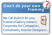 Global Art, as well as wood profiles from Studio Moulding, Larsen Juhl, Décor, Omega, and Framerica. Discounts are offered to Custom Framers, Corporate Art Services and Consultants. We build it and ship it, while you profit from it!